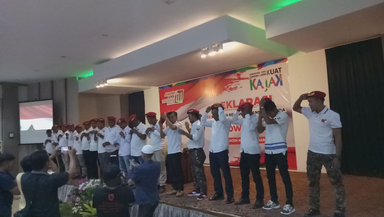 Eks Relawan GRPG saat deklarasi dukungan kepada Capres Jokowi-Ma'ruf, Minggu (24/3) di Banda Aceh. Foto:i