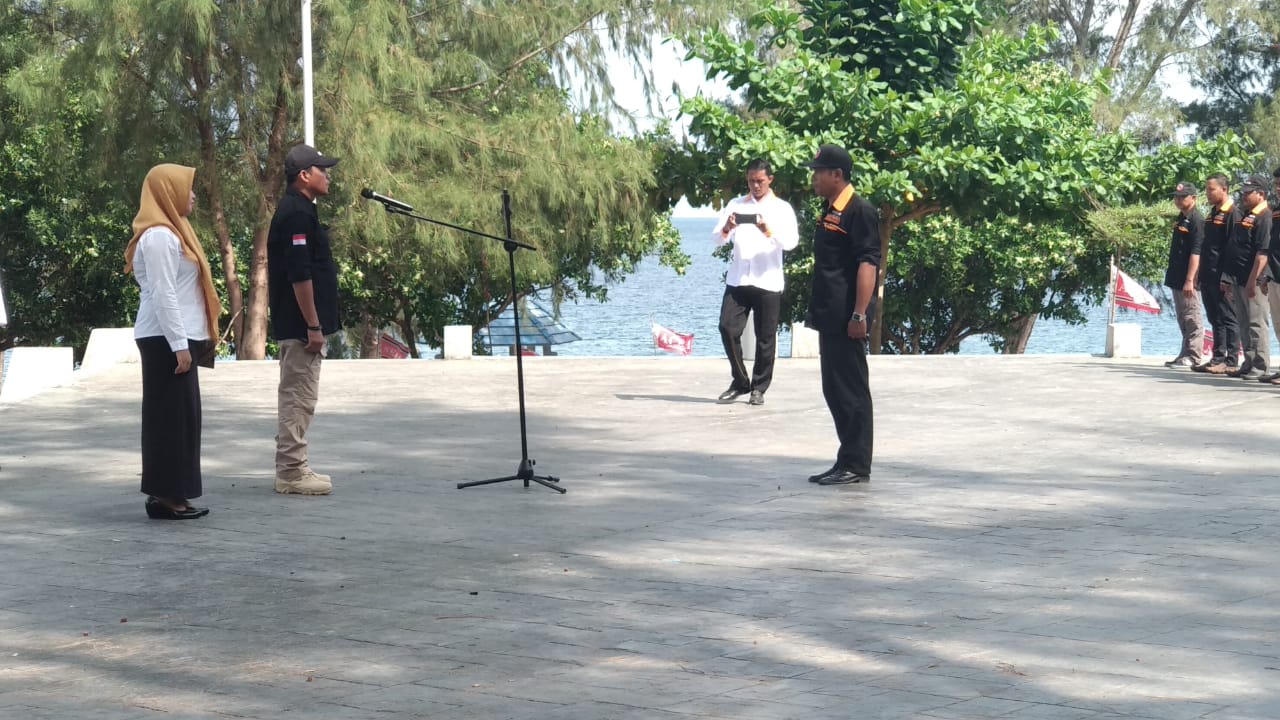 DIALEKSIS.COM | Sabang - Panitia pengawas pemilihan Kota Sabang menggelar apel siaga Pemilu 2019 hari ini, Jumat, (12/4) di Jln. Sabang Fair Gampong Kuta Barat, Kec. Sukakarya, Sabang. Dalam kegiatan yang dihadiri oleh seratusan peserta apel itu, bertindak sebagai inspektur apel Ketua Panwaslih Sabang, Dasrul Rinaldi, SE.