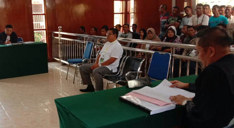 DIALEKSIS.COM | Aceh Tamiang - Manajer PT Seumadam, Ir Rusli dihadirkan sebagai terdakwa pada sidang perdana di PN Kualasimpang, terkait perselisihan dengan kelompok pekerja di perusahaan perkebunan sawit itu, Rabu (27/3/2019).