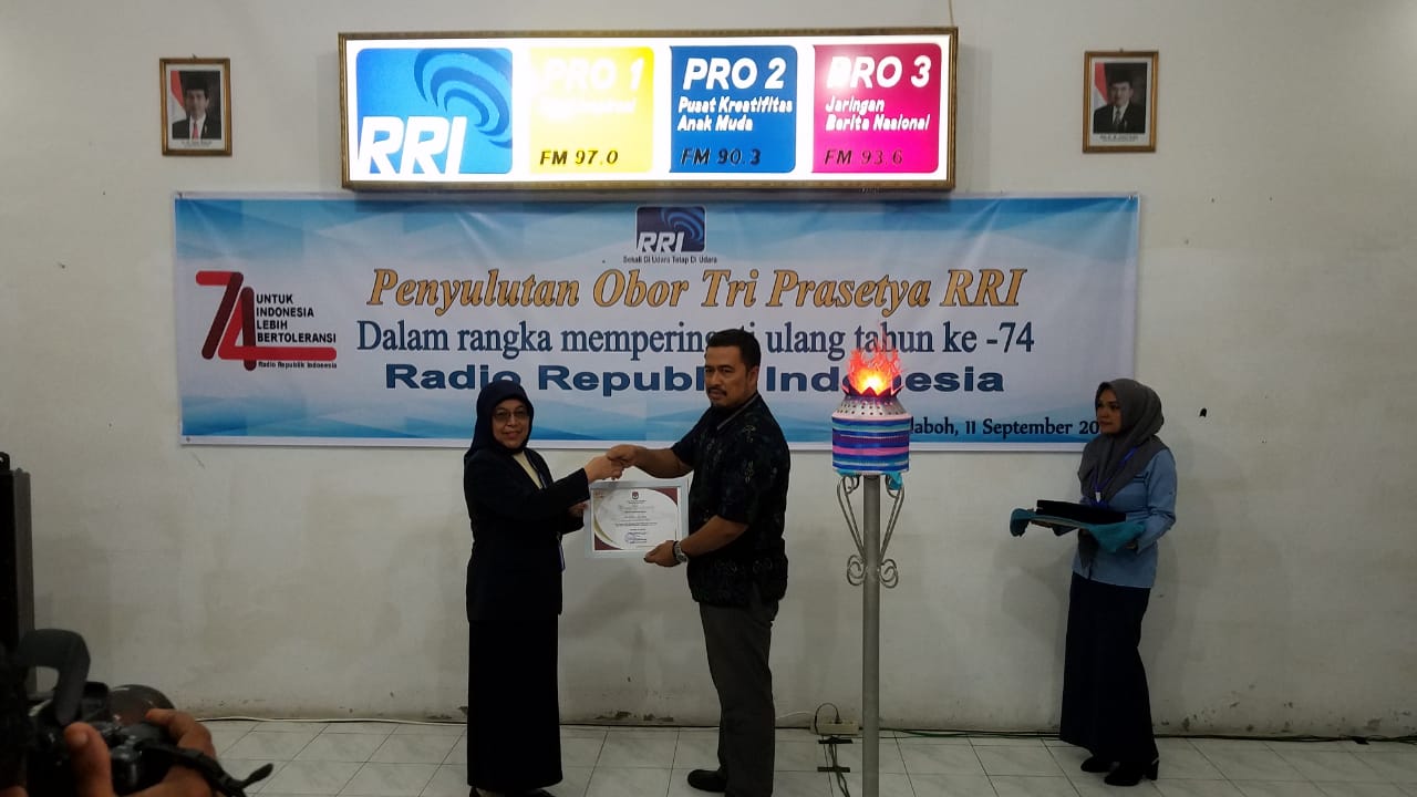 Penghargaan ini diberikan oleh lembaga penyelenggara pemilu ini bertepatan pada peringatan hari jadi RRI yang ke 74. Penghargaan diserahkan langsung Ketua KIP Aceh Barat T. Novian Nukman kepada Kepala LPP RRI Meulaboh Solmah di Auditorium LPP RRI Meulaboh, Rabu (11/92019).