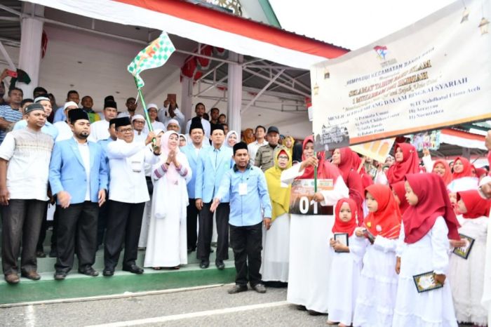 Pada kesempatan itu, Wali Kota Aminullah yang hadir bersama istri Nurmiaty AR, turut didampingi oleh Ketua Umum Badan Kemakmuran Pemuda Remaja Masjid Indonesia (BKPRMI) Aceh Mulia Rahman, Sekda Bahagia, dan sejumlah Kepala SKPK Banda Aceh.Usai melepas bendera start, Aminullah dan rombongan ikut berbaur dengan peserta untuk berjalan kaki hingga ke Meuligo Aceh. Di sana, ia bersama sejumlah pejabat Pemerintah Aceh menyapa dan menyambut para peserta pawai yang lewat di depan rumah dinas Gubernur Aceh tersebut.